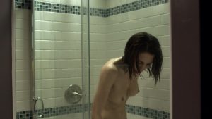She’s out from the shower and walking around topless. She then takes her head off??!? WTF??!?!?
