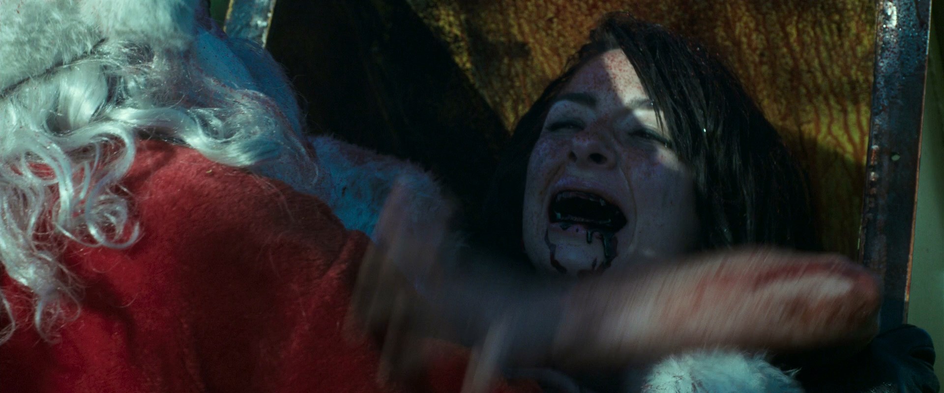 Cortney Palm is modeling then killer Santa starts to change her in this long LONG scene. Shes topless