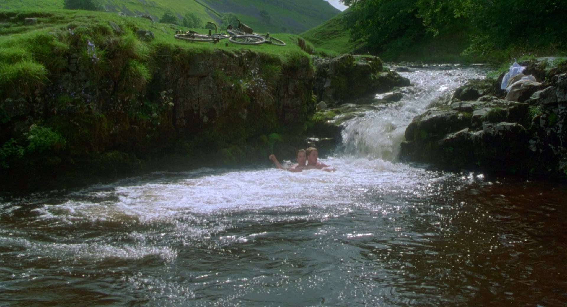 Emma is enjoying swimming naked on a lake
