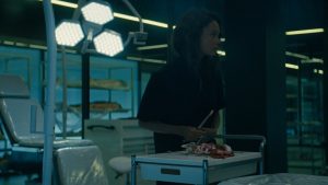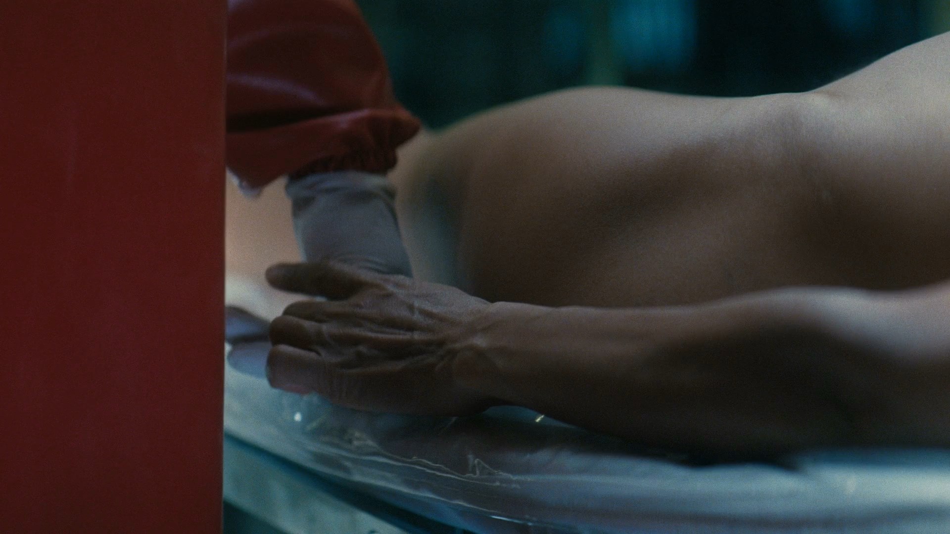 Thandie Newton is fully naked when she gets up from the operating table and walks around