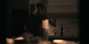Camille Rowe shows sideboob when she makes out with some guy