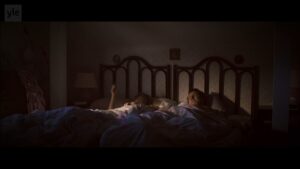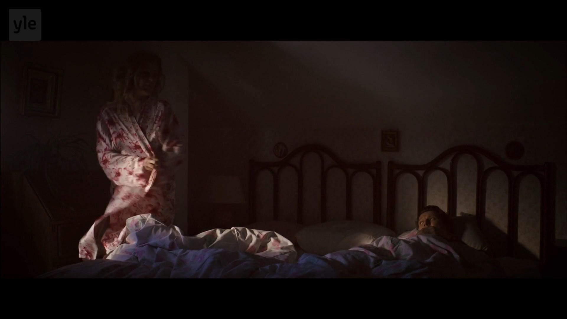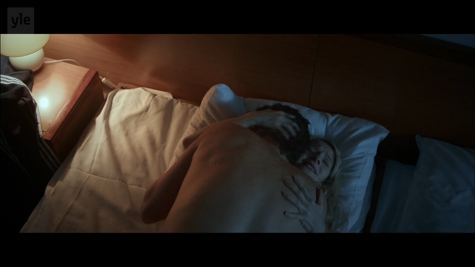 Pirjo Lonka shows her tits very briefly when she gets up from the bed