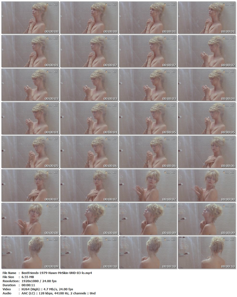 Nude, breasts – 00:53:50 Goldie’s in the shower sans Burt this time, briefly showing her left breast! (11 secs)