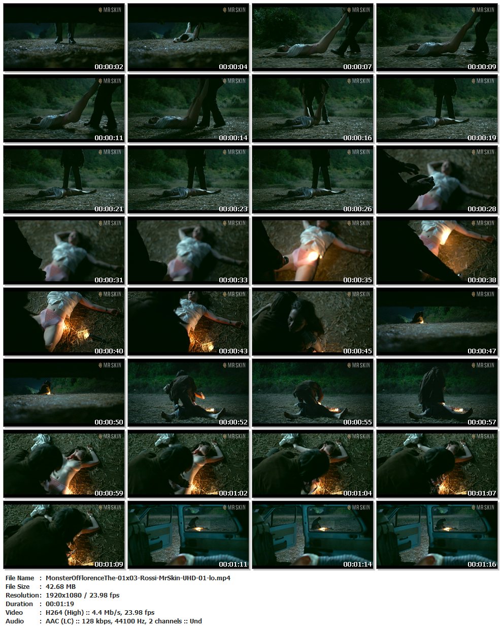 Nude, breasts, bush, underwear – Ep. 01×03 | 00:48:45 Caterina’s body is dragged out of a car, then the killer removes her shirt and undies to reveal her rack plus a quick hint of bush. (1 min 19 secs)