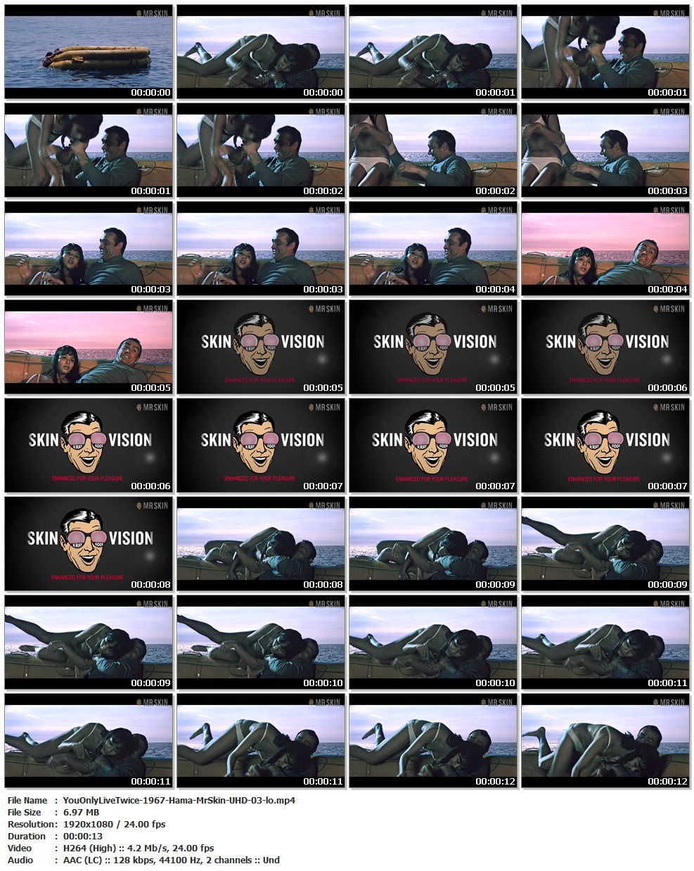 Nude, breasts, bikini – 01:53:00 Mie Hama is helped into a lifeboat by Sean Connery, and . . . whammo! Ultra-rare double nip slip! (13 secs)