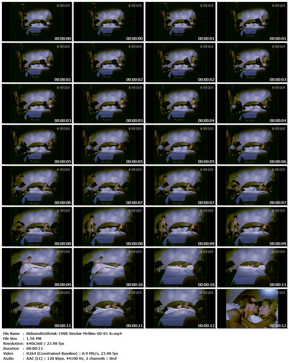 Nude, breasts, underwear – 00:49:11 A long distance look at Annette’s knockers as she slips out of her bra and panties and into a big bed with Brittain. (13 secs)