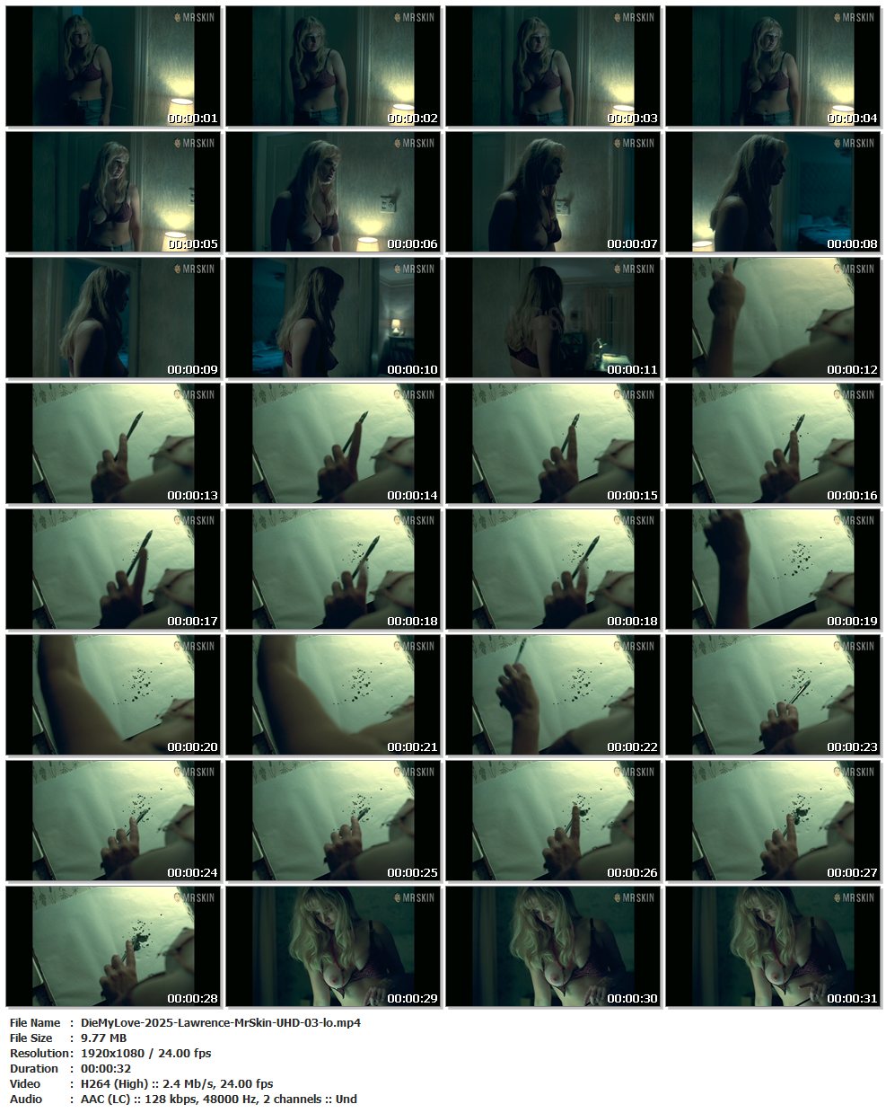 Nude, breasts, underwear – 00:10:30 Jennifer’s right breast is out of her bra after breastfeeding, and she eventually mixes ink with breastmilk on a piece of paper! (32 secs)