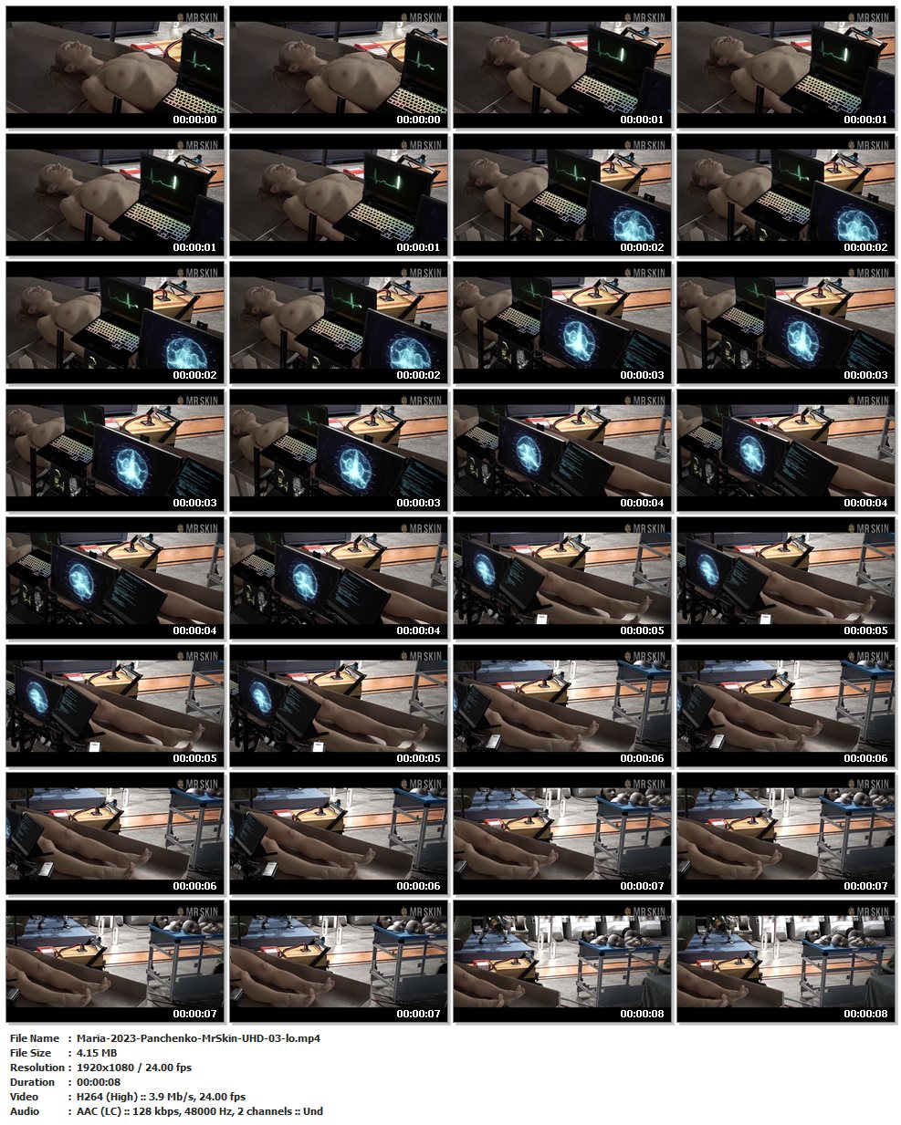 Nude, breasts – 01:08:40 Daria lays topless in a lab filled with lots of synthetic body parts, but none as nice as her naked knockers! (8 secs)