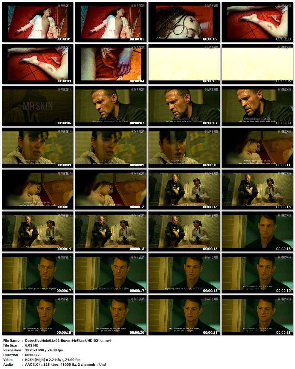 Nude, breasts – Ep. 01×02 | 00:05:30 More crime scene nudity from Agnes Born as the titular Detective Hole shows up to snap some pics of her dead body. (22 secs)