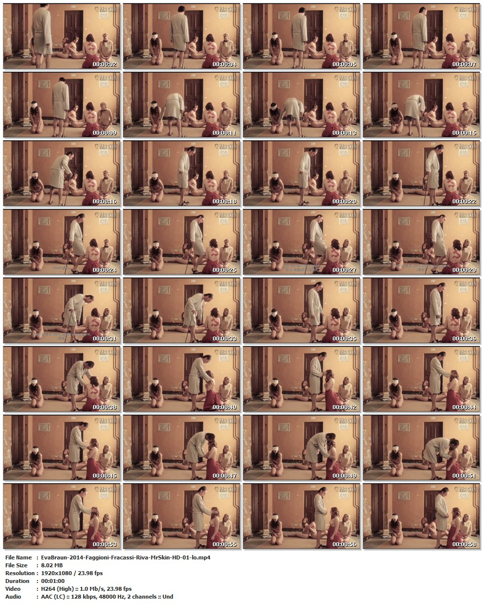 Nude, breasts, bush – 01:16:22 Breasts on Federica and Giulia, while Gabriella delivers full frontal as they and others sit around at the mercy of Andrea Riva. (1 min)